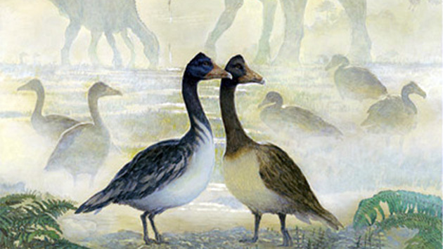 В ходе раскопок в Антарктиде исследователи смогли выяснить на что было похоже пение первых птиц и динозавров. Об этом говорится в статье, опубликованной в журнале Nature. Франц Голлер (Franz Goller) из университета Юты в Солт-Лейк-Сити вместе с коллегами обнаружил останки прямого родственника современных пернатых — Vegavis iaai, — который жил во времена мезозоя за полярным кругом. Останки отлично сохранились, что позволило ученым рассмотреть не только кости и перья, но и отпечатки мягких тканей. С помощью томографа Голлер смог изучить строение сиринкса — голосового органа птиц, который расположен у основания трахеи. Сравнение этого органа древней птицы с современными позволило установить, что он практически повторяет строение сиринкса гусей, уток и других птиц без певческих навыков. Исходя из этого Голлер утверждает, что Vegavis iaai как минимум могла крякать и гудеть. При этом у динозавров, которые были ближайшими современниками птиц, такого органа нет. Соответственно они могли лишь издавать гортанные звуки, не раскрывая рта. Авторы статьи заключают, что умение выдавать сложные звуки, вроде трелей, могло стать одним из ключевых факторов развития птиц и эволюционным преимуществом по сравнению с другими видами архозавров. В июле 2016 года ученые узнали о том, что динозавры не ревели, раскрыв пасти, а ворковали и курлыкали с закрытым ртом, подобно современным птицам. Многие динозавры также раздували шеи и издавали курлыкающие звуки для привлечения самок и отпугивания конкурентов. Ближайшим аналогом среди современных птиц могут быть страусы.