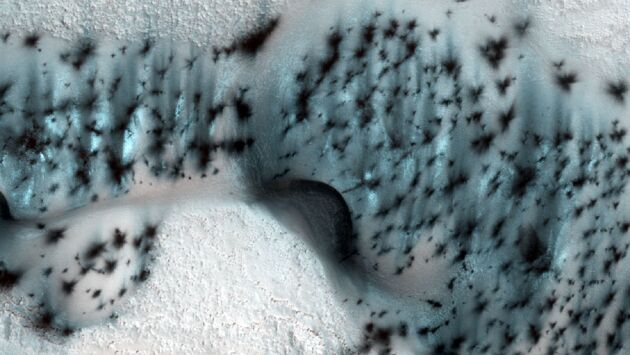 NASA опубликовало фотографии зимнего Марса, сделанные с автоматической межпланетной станции Mars Reconnaissance Orbiter.