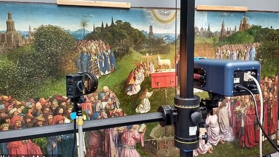 Это полотно было написано братьями Губертом и Яном ван Эйком. Последняя реставрация ягненка сделала его более «человечным», многие ценители тогда возмущались, так как животное стало выглядеть совсем иначе. Однако анализ ученых из Университета Антверпена доказал, что реставраторы были правы «переделав» ягненка. Рентгеновские лучи и инфракрасный свет показали, что изначально братья ван Эйк написали ягненка более похожим на современный вариант, чем на тот, который был до. Более того, они обнаружили, что полотно подвергалось реставрации целых три раза! Исследователи заметили свидетельства того, что части головы и тела были закрашены уже в 1950-х годах, однако в то время технология не могла определить, насколько значительными были эти изменения. Сейчас ученые смогли обратиться к современным методам для того чтобы проследить за эволюцией этого произведения. Так они использовали рентгеновские лучи для обнаружения ртути, которая присутствует в киноварной краске. Это выявило первоначальное расположение некоторых частей ягненка. «В прошлом ученые не могли узнать историю «Агнца Божьего», так как он написан преимущественно белыми свинцовыми чернилами. Объединив две методики спектроскопии, мы в мельчайших деталях узнали, как менялся внешний вид центральной фигуры Гентского алтаря», — рассказали исследователи. В итоге ученые выявили три версии ягненка: оригинальная версия, написанная братьями Ван Эйк, вторая версия с более крупными, квадратными задними конечностями (либо изменение оригинальными художниками, либо одним из их современников), и третья версия из XVI века. Последнее обновление было самым значительным, говорят исследователи, оно привело к изменениям формы головы и лица. Например, первоначально у ягненка ноздри были меньшие, а также они располагались выше. В оригинале глаза смотрели вперед и ниже, также инфракрасный свет показал темные линии внизу, которые указывают на «поджатые» губы. По мнению исследователей губы ван Эйков были более заметными и похожими на человеческие, чем те, которые были написаны в XVI веке. Также изменились и уши, первоначально они были выше, а в XVI веке они были написаны поверх позолоченных лучей ореола.
