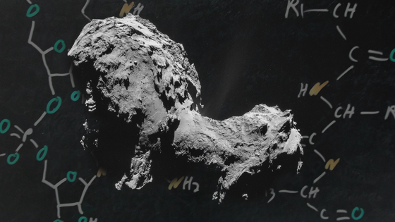 Ученые выяснили, что в условиях космоса может образоваться метиламин — предшественник глицина, также обнаруженный в коме кометы. Затем, используя экспериментальную высоковакуумную установку, исследователи показали, что глицин может образовываться в присутствии водяного льда. Результаты астрохимического моделирования подтверждают это открытие и позволяют экстраполировать данные, полученные за время лабораторного эксперимента, на временные шкалы межзвездной среды.