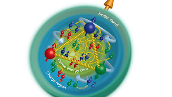 Определение глюонного гравитационного формфактора протона помогло физикам частично определить скрытую массу протона, которую составляют глюоны. Ученые определили массовый радиус протона, вклад в который создается сильным кварк-глюонным взаимодействием. Статья опубликована в Nature.Протон — один из основных строительных блоков всей видимой материи во Вселенной. Именно протоны определяют все химические элементы периодической таблицы, они содержатся как в звездах, так и в межзвездном пространстве. Протоны можно найти в космических лучах и солнечном ветре, иными словами, в центре каждого атома Вселенной. Протон состоит из кварков и глюонов — фундаментальных частиц, еще более маленьких компонентов физики. Между кварками и глюонами есть фундаментальная разница. Кварки — фермионы, то есть в буквальном смысле «кирпичики материи», из кварков состоит огромное множество элементарных частиц. А вот глюоны — это бозоны, они не строят материю, а переносят взаимодействия. Глюоны являются переносчиками так называемого «сильного взаимодействия», отвечающего за ядерные силы. Благодаря глюонам кварки могут «склеиться» и объединиться в протон. Протон обладает своими собственными фундаментальными свойствами, которые определяет взаимодействие кварков и глюонов: масса, электрический заряд, спин (собственный момент импульса). Спин и электрический заряд протона складываются из кварков — эти характеристики уже хорошо изучены. Напротив, о массе протона мало что известно: если сложить массу всех кварков протона, то в результате получится очень небольшой процент от его действительной массы. Таким образом, мы не знаем о роли глюонов в формировании массы протонов. Глюоны исследовать гораздо тяжелее, нежели кварки, так как глюоны не несут электрический заряд.Новый эксперимент проводился на электронном ускорителе-рекуператоре CEBAF в Лаборатории Джефферсона. В эксперименте ученые выстрелили электронами с энергией 10,6 гигаэлектронвольта (ГэВ) в небольшой блок меди. Сталкиваясь с медным блоком, электроны замедлялись или отклонялись. Поскольку заряженный электрон сталкивался с атомами меди, под действием электростатических полей атомов свободный электрон рассеивался и испускал фотон. Затем пучком полученных фотонов ученые ударяли по протонам внутри мишени из жидкого водорода (в жидком водороде огромная концентрация протонов, ведь сам протон — это водород без одного электрона, то есть H+). В конце концов продукты этих взаимодействий измерялись в виде электронов и позитронов (античастиц электронов). Экспериментаторов интересовали взаимодействия, которые позволяли получить J/ψ-мезоны: короткоживущие частицы, состоящие из кварков. Они быстро распадаются на пару электрон/позитрон. Из миллиардов взаимодействий ученые получили около двух тысяч J/ψ-мезонов, что совпадало с количеством пар электрон/позитрон. Чтобы реакция, дающая J/ψ-мезон, произошла, необходимо, чтобы фотон столкнулся с протоном. То есть фотон должен прилететь достаточно близко и попасть в некоторое поперечное сечение — сечение реакции. Ученые рассчитали поперечное сечение фотон-протонного взаимодействия.«Это похоже на то, что мы делали все это время. При рассеянии электронов на протоне мы получали распределение заряда протона. В этом случае мы получили J/ψ-мезон от протона и 