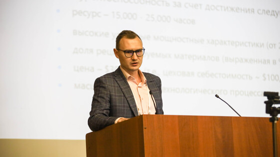 Третий доклад представил Евгений Волков, руководитель черноголовской компании «Поликом», которая специализируется на производстве электролизеров с протоннообменной мембраной – конкурирующей технологией с более старой технологией щелочного электролиза, в которой водород получается электролизом раствора щелочи в воде.