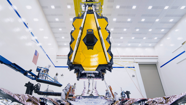 На фотографии выше специалисты впервые с помощью крана соединяют телескоп и научное оборудование с солнцезащитным устройством и космическим аппаратом космической обсерватории James Webb. Следующим шагом станет соединение и тестирование электрических связей двух «половинок». Запуск обсерватории запланирован на NASA, ESA и CSA (канадского комического агентства) запланирован на 2021 год