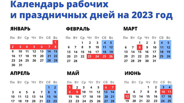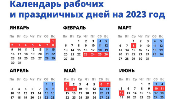График нерабочих и праздничных дней на 2023 год опубликовало правительство России в своем Telegram-канале. Всего россиян ожидает 26 дополнительных выходных.