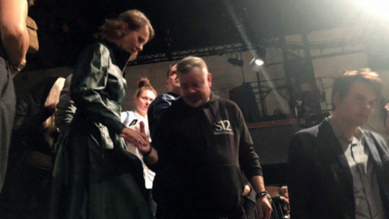 Фотография с премьеры, на которой телеведущая направляется к своему месту в зрительном зале в бизнес-центре Москва-Сити, появилась в телеграм-канале K/On/Off.