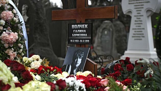 «Могилу Галины Волчек трудно не найти. Метров на пятьдесят от места захоронения по обе стороны аллеи высятся венки, тронутые снегом. От земли и до середины человеческого роста — стена цветов, желтые, красные и белые розы, некоторые — еще свежие, под белой шапкой снега», — пишет «КП».