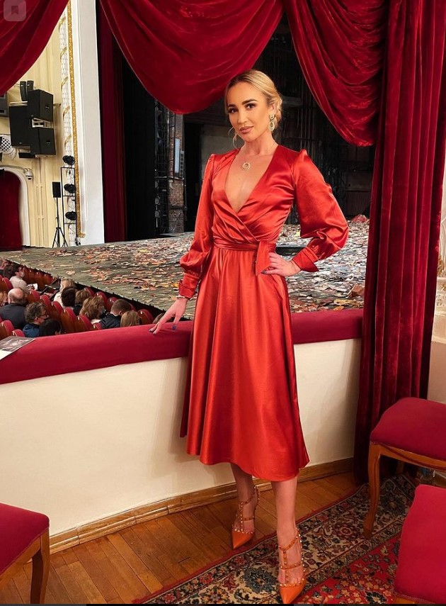Ольга сфотографировалась в одной из театральных лож. На поющей телеведущей ярко-алое платье - в тон цветовой гаммы зрительного зала.