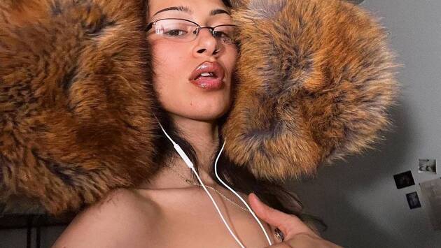 На размещенном фото девушка предстала перед камерой в меховой шапке-ушанке, прикрыв рукой обнаженную грудь. При этом она надела очки с прозрачными линзами и нанесла на губы сияющую нюдовую помаду.