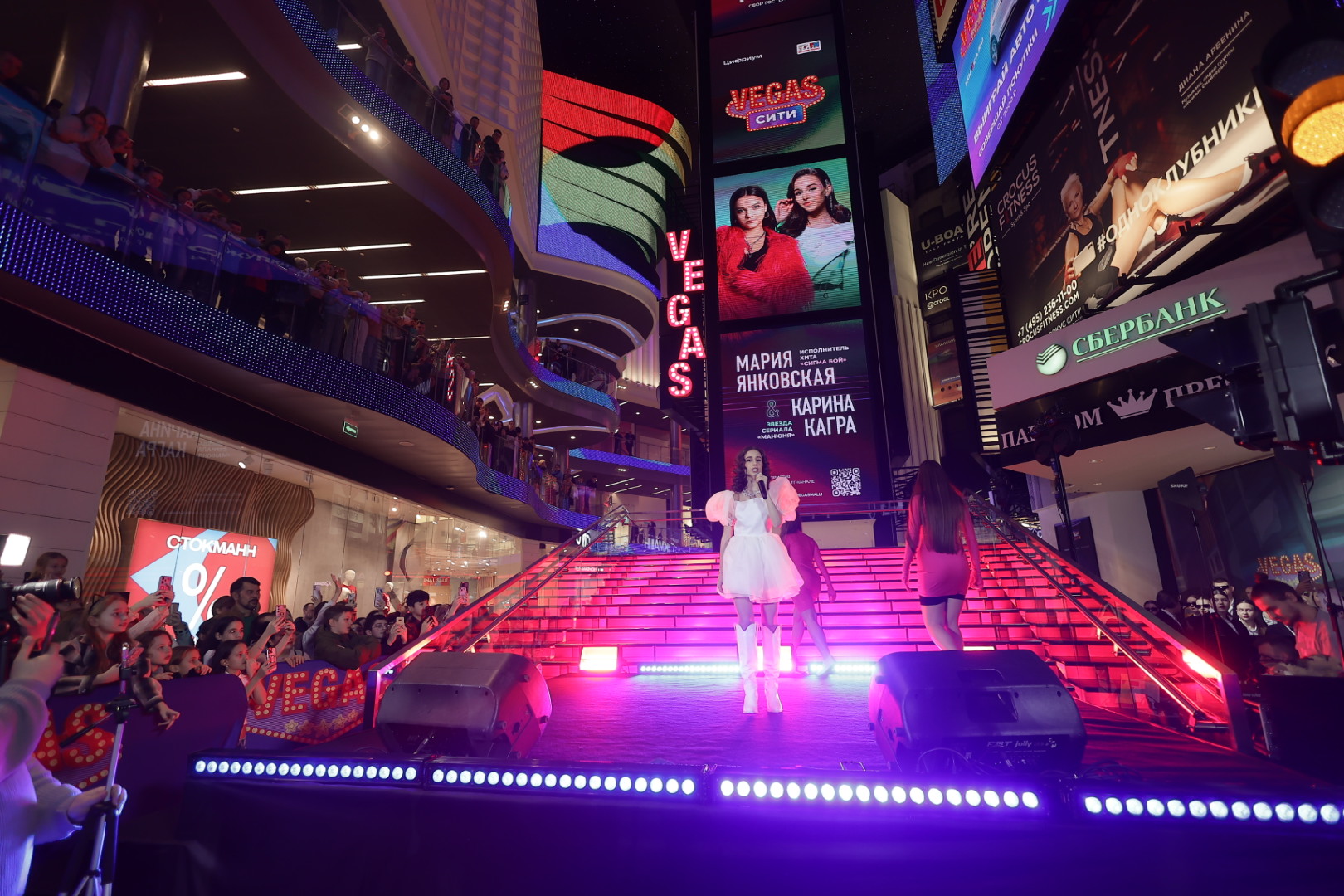 Суббота в ТРК VEGAS Сити стала настоящим праздником: 1 февраля на сцену вышли звезды — исполнительница мирового хита «Сигма Бой» Мария Янковская и звезда сериала «Манюня» Карина Кагра, а также специальный гость DJ MISS LI. Это долгожданное событие зимы объединило нескольких тысяч человек, которые на всех трех этажах ТРК VEGAS в унисон спели бесспорный хит этого года!