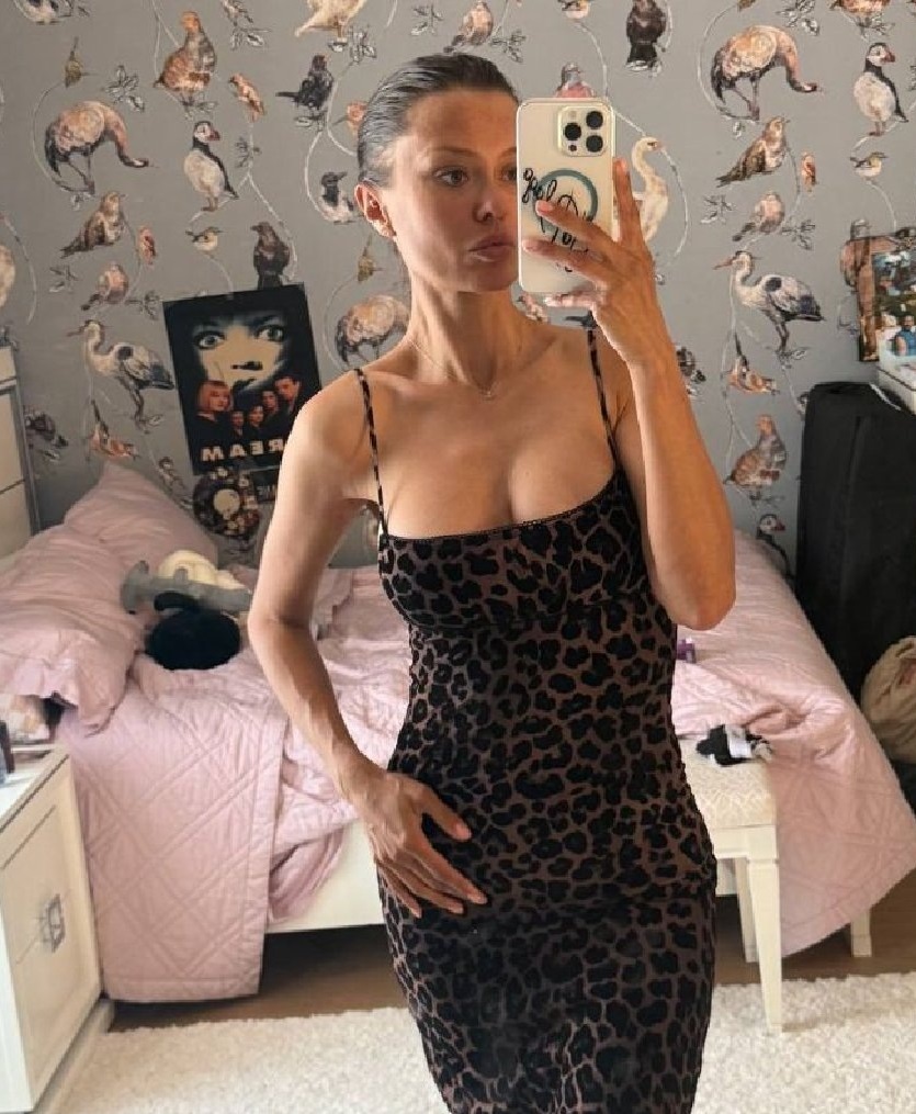 На опубликованных кадрах 45-летняя Боня красуется в обтягивающем платье на тонких бретельках с леопардовым принтом.