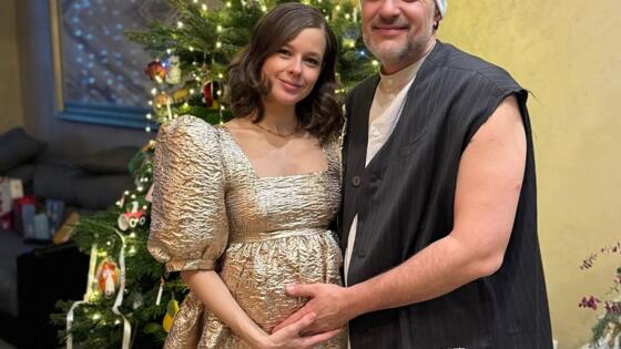 40-летняя Катерина Шпица поделилась «беременным» снимком с мужем в Рождество