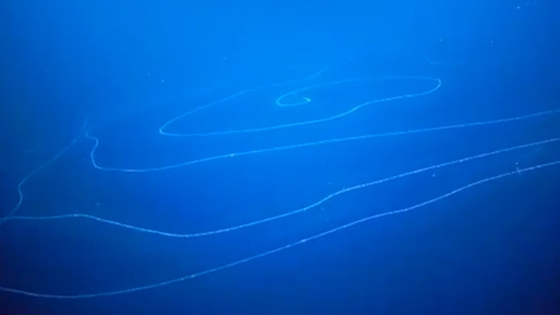 Исследователи Института океанологии Шмидта сняли на видео гигантское нитевидное существо сифонофору, сообщает РИА «Новости».