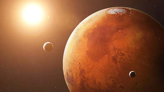 Зонд снял поверхность планеты, двигаясь от освещенной Солнцем части планеты к его темной стороне. На кадрах также можно увидеть марсианский рельеф.