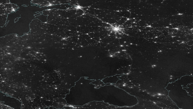 Фото датируется 17 декабря. На снимке видно, что Украина погрузилась в полную темноту. Вокруг можно заметить яркие пятна от света городов и инфраструктуры в соседних странах.