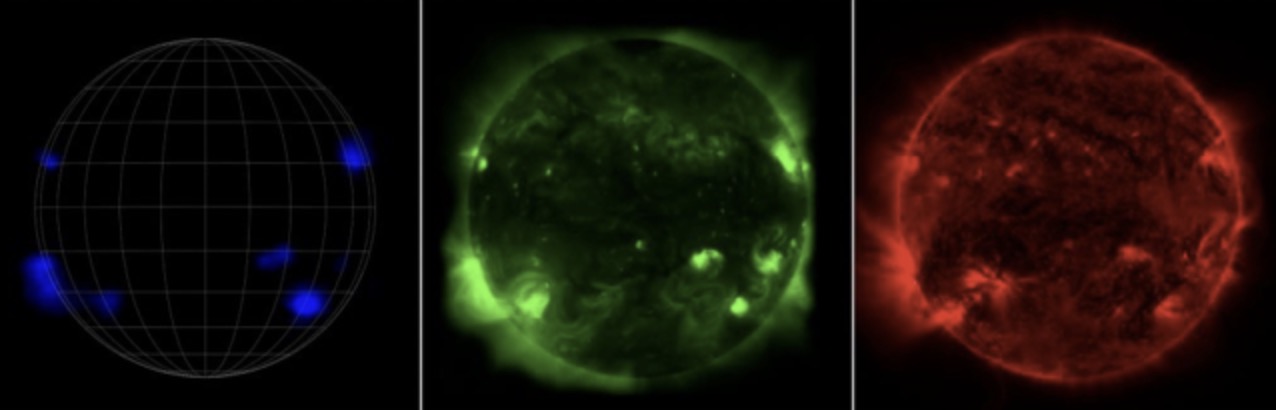 Высокоэнергетические рентгеновские лучи были обнаружены в нескольких определённых областях атмосферы Солнца — они соответствуют самым горячим областям в солнечной короне.