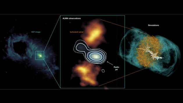 Когда материя попадает в аккреционный диск сверхмассивной черной дыры, какая-то ее доля может выбрасываться обратно в виде релятивистских струй. Так астрономы называют направленный поток материала, движущийся с околосветовой скоростью. При столкновении с галактическим газом струя может отталкивать его, и подобное взаимодействие материи изучено очень плохо.