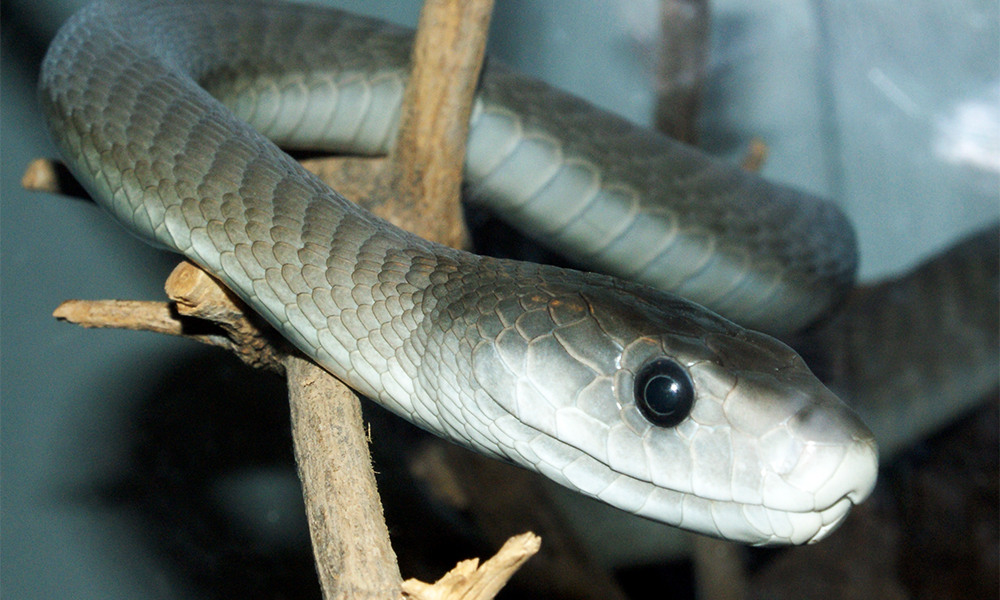 Африканская черная мамба — одна из самых опасных змей на планете. Она прекрасно чувствует себя как на земле, так и на деревьях. Среднестатистическая черная мамба вырастает до 3 метров, однако некоторые взрослые особи достигают где-то 4,5 метров. При нападении черная мамба способна атаковать со скоростью 16 км/ч!