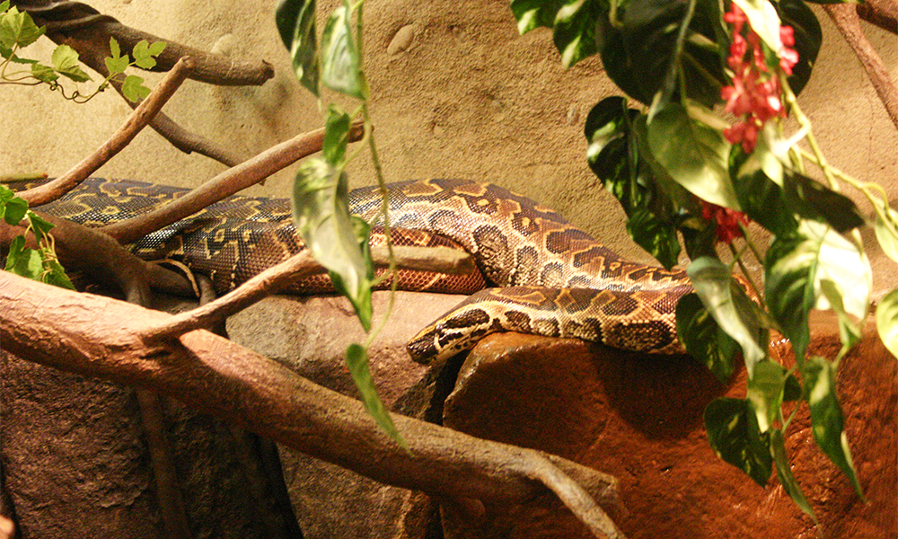 Индийский питон — прообраз персонажа Каа из мультфильма «Книга Джунглей». Он не ядовит, весьма нерасторопен и спокоен. Самую крупную особь этого вида обнаружили в Пакистане: длина змеи составляла 4,6 метра при весе 52 килограмма.