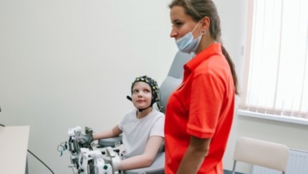 Технология как будто пришла из фантастического фильма: ребенок сидит в особом кресле с множеством датчиков на голове и воображает, как должна двигаться его рука. Энцефалограф считывает эти импульсы и передает их в компьютер, где они преобразуются в управляющие сигналы для робота-экзоскелета кисти руки. И обездвиженная рука начинает двигаться.