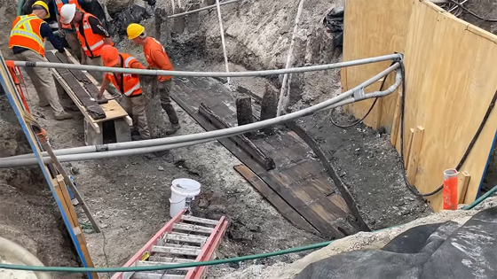 Дорожные рабочие обнаружили лодку, когда прокладывали дренаж.