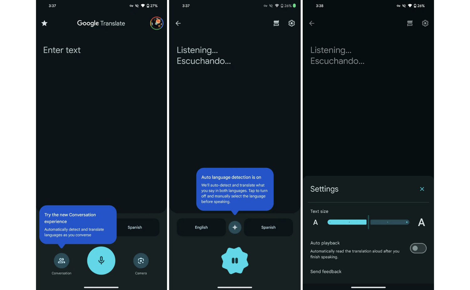 Это обновление также включает возможность регулировки размера текста с помощью нового дизайна ползунка Material 3 и функцию автоматического воспроизведения.