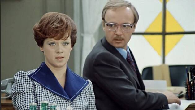 Верочке же в пьесе — чуть больше 20 лет. Она была длинноногой красоткой, нацеленной на выгодный брак. Лия Ахеджакова, которой было 38 лет, в этот образ никак не вписывалась. Специально для нее Рязанов полностью переписал роль секретарши. Статистическое учреждение, где работали главные герои, снимали в трех разных местах Москвы. Фасад дома — это Федеральное агентство морского и речного транспорта на Кузнецком Мосту, кабинет Калугиной имел выход на крышу дома девятиэтажного дореволюционного «небоскреба» в Большом Гнездниковском переулке, а кабинеты со всей обстановкой были построены в павильонах «Мосфильма».