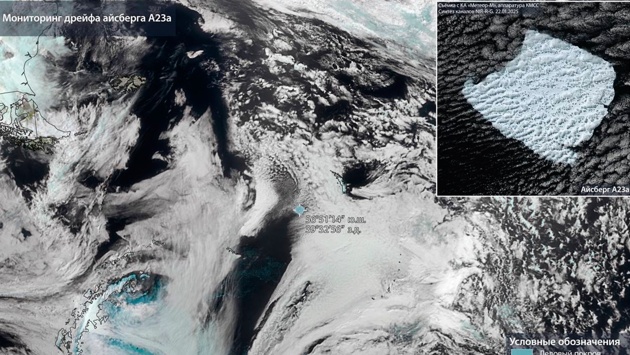 Роскосмос опубликовал снимки, сделанные со спутника «Метеор-М», крупнейшего в мире айсберга А23а.