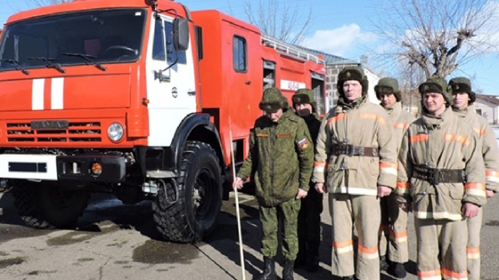 Пожарный расчет военной базы ЮВО локализовал очаг условного возгорания на объекте в ходе тренировки в Армении