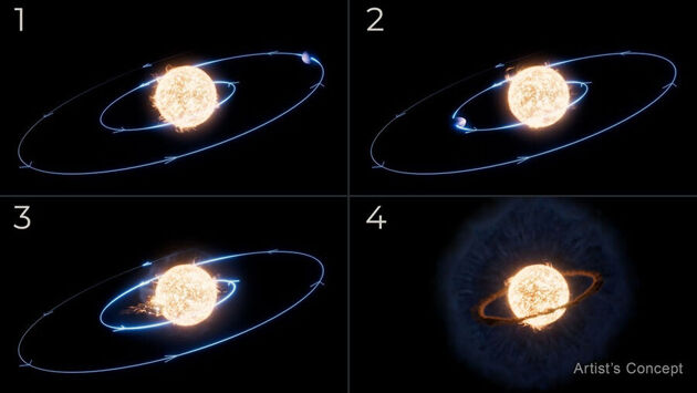Сначала астрономы полагали, что светило уничтожило планету в результате собственного расширения, но оказалось, что обреченный мир врезался в звездную поверхность, поскольку его орбита постепенно разрушалась из-за гравитационного взаимодействия.