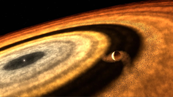 Горячие Юпитеры — газовые гиганты, находящиеся ошеломительно близко к своим звездам. Их образование вызывает вопросы: считается, что они не могут появиться на таких близких орбитах, так как излучение и ветры звезды мешают накоплению газа. Основное объяснение заключается в том, что они формируются дальше и затем мигрируют к звезде. Именно сочетание молекул в атмосфере Тилоса помогло определить место рождения экзопланеты.Звезды рождаются из плотных облаков молекулярного газа. Материал формируется в диск, который питает растущую звезду. Как только звезда становится достаточно мощной, чтобы оттолкнуть материал своими ветрами, ее рост прекращается. Оставшийся в диске материал образует маленькие камешки пыли и льда, соединяясь и образуя планеты.