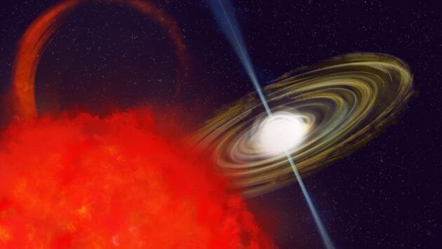 Более того, интервалы между вспышками радиоволн, похоже, сокращаются, а не удлиняются, что говорит о том, что вращение CHIME J1634+44 ускоряется, а не замедляется, как это обычно происходит. Эти особенности указывают на наличие спутника, с которого CHIME J1634+44 может захватывать материал.