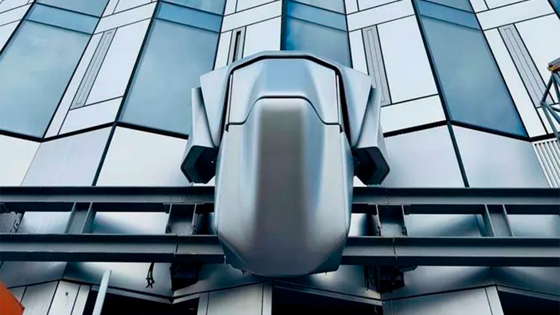 Кадры с футуристичной машиной, которая ездит по рельсам в нижней части здания, облетели интернет и вызвали интерес. В соцсетях робота-мойщика за необычнй внешний вид назвали Дартом Вейдером из "Звездных войн" - сходство и правда есть.
