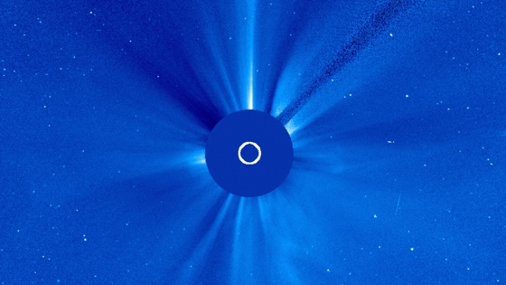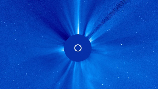 Первой планетой, которая подошла к звезде два дня назад на угловое расстояние менее десяти градусов, стала Венера - она уже видна на снимках коронографов как яркий объект на правом краю изображения. Сегодня на такое же расстояние приблизился Марс - до конца недели он попадет в поле зрения аппаратов.