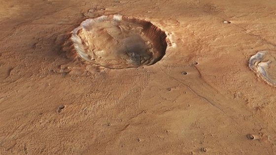 Новые снимки были сделаны в цифровом формате с использованием топографических данных орбитального аппарата «Марс Экспресс». «Бабочка» отличается от большинства ударных кратеров Солнечной системы, которые имеют круглую форму. Небольшой угол падения этого астероида привел к неравномерному распределению обломков. Два фрагмента породы вылетели наружу на север и юг кратера, образовав два распростертых «крыла».