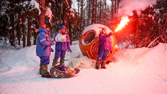 В ходе тренировки команде необходимо продержаться в лесу около двух суток до прибытия спасательного вертолета. При себе у космонавтов имеется специальный аварийный запас.