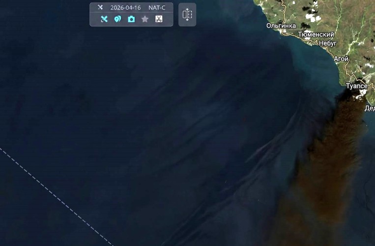 На оптическом спутниковом снимке Sentinel от 16 апреля в районе Туапсе отчетливо виден черный шлейф дыма от пожара на терминале. По данным мониторинга на вечер 20 апреля, пятно загрязнения в воздухе сохраняется.