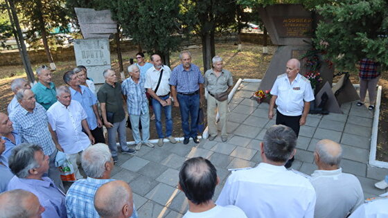 СЕВАСТОПОЛЬ, 30 авг — РИА Новости Крым. В Севастополе на Кладбище Коммунаров у монумента морякам большого десантного корабля "Отважный" прошел траурный митинг, посвященный 45-летию со дня трагедии. Как передает корреспондент РИА Новости Крым, в мероприятии приняли участие около 30 членов экипажа корабля. "Во время гибели "Отважного" погибли три моих подчиненных, молодые парни, которым не было и 20 лет. Все мы могли погибнуть. 30 августа для нас — день скорби и памяти, мы всегда приходим сюда", — сказал РИА Новости Крым командир машинно-котельной группы "Отважного" Михаил Галунка. В этом в году в мероприятии приняли участие офицеры и моряки фрегата "Сметливый" – "брата" "Отважного" (корабли аналогичного проекта). "Для нас огромная честь быть частью этой истории. Мы служим практически на таком же корабле. Мы бережем морские традиции, чтим память моряков, которые погибли при исполнении воинского долга", — сказал командир группы управления ракетно-артиллерийской боевой части "Сметливого" Дмитрий Харченко. Большой противолодочный корабль "Отважный" затонул 30 августа 1974 в 23 милях от Севастополя в результате внештатного запуска маршевого двигателя зенитной ракеты, что спровоцировало пожар и серию взрывов. Корабль унес жизни 24 моряков, среди них пятеро курсантов.
