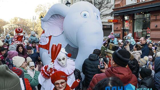 Слона водили в центре Ростова: фоторепортаж предновогоднего шествия уличного театра
