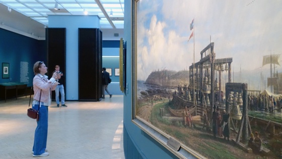 Нет, разумеется, в центре экспозиции выставки оказались батальные полотна морских сражений, которые стали визитной карточкой мариниста. Ради юбилейной выставки Боголюбова из Русского музея в Москву приехало даже огромное полотно "Гренгамское морское сражение 27 июля 1720 года". Написанная по заказу Александра II, эта картина была закончена в 1866 году.