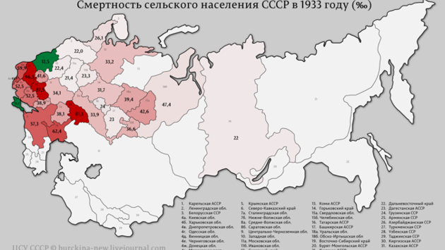 Опубликована опровергающая голодомор карта смертности в СССР в 1933 году