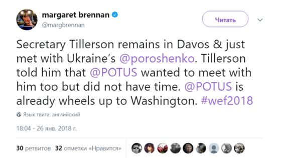 Весемирный экономический форум в Давосе, проходивший с 23 по 26 января в Швейцарии, оказался полон неприятностей для президента Украины Петра Порошенко. Они начались еще до его прибытия преследовали его по пятам до самого завершения. Первый удар пришел откуда не ждали. Бывший вице-президент США Джозеф Байден, выступая в Совете по международным отношениям, раскрыл обстоятельства отставки гепрокурора Украины Виктора Шокина. Байден рассказал, что занимаясь проблемой коррупции на Украине, буквально шантажировал Киев миллиардным кредитом, заставляя принимать кадровые решения. По его словам, США пообещали Киеву кредит в обмен на то, что Порошенко совместно с тогдашним премьером Арсением Яценюком избавятся от видного коррупционера Шокина, однако выяснилось, что они не собираются этого делать. «Я сказал, что вы не получаете миллиарда долларов, и я приеду через шесть часов, если ваш генпрокурор (Шокин) не будет уволен к тому времени, вы не получите денег. И тот был уволен», — похвастался Байден. Хотя прямого отношения к форуму в Давосе выступление Байдена не имело, СМИ растиражировали его слова 24 января — как раз перед тем, как Порошенко был вынужден общаться с прессой, причем не только с лояльным украинскими журналистами, но и иностранцами. В итоге одна из таких встреч обернулась скандалом: перенервничавший президент сорвался на журналистку, которая задала ему неприятный вопрос на счет закона о реинтеграции Донбасса. Вместо того, чтобы ответить по существу, Порошенко заявил, что знает три языка, но отвечать будет только по-украински, а затем обратил внимание на то, что журналистка одета в вышиванку, и предложил ей раздеться. Этого оказалось недостаточно, и украинский лидер натравил на нее свою охрану. На этом давосские приключения Порошенко не закончились: главной целью визита президента в Швейцарию была встреча с президентом США Дональдом Трампом, которая бы продемонстрировала миру поддержку Киева со стороны Вашингтона. Встреча была пафосно анонсирована главой МИД Украины Павлом Климкиным, но не состоялась, поскольку Трамп про своего коллегу просто забыл. Пресс-служба Белого дома и Госдеп не нашли ничего лучше, чем объявить: главе США просто не хватило на Порошенко времени. «Секретарь Тиллерсон остался в Давосе и только что встретился с украинским президентом Порошенко. Тиллерсон сказал ему, что Трамп тоже хотел встретиться с ним, но не успел. Трамп уже на пути в Вашингтон», — сообщила в своем Твиттере журналистка телеканала CBS Маргарет Бреннан, сославшись на заявление госсекретаря США Рекса Тиллерсона. Провал подстерегал Порошенко и в отношениях с европейскими партнерами: в своем выступлении он призвал страны Европы создать новую коалицию для противостояния «российской агрессии», обвинил «Газпром» в попытках «подкупить некоторые европейские страны», а также назвал политическим решением строительство газопровода «Северный поток — 2» в обход Украины. Поскольку на роль «некоторой страны» в данном случае более всего подходит неформальная хозяйка всего Евросоюза Германия, тезисы Порошенко были встречены без энтузиазма. Наконец, «зрада» настигла Порошенко и в самой Украине. Киевский экономист и блогер Виктор Скаршевский заявил, что президент всего за 20 секунд трижды солгал в интервью Bloomberg. «Мы, первое украинское правите