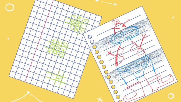 Совсем недавно мы делали ностальгическую подборку подвижных игр из нашего детства, а теперь решили вспомнить самые любимые бумажные игры — идеальный вариант для дороги или домашних развлечений. Как правило, для такого варианта досуга вам нужны будут только бумага (иногда она должна быть в клеточку) и пишущие средства. Вуаля! Крестики-нолики Это, наверное, самая классическая игра в нашем списке. Играют двое. Вам понадобится бумага в клеточку (или вы можете сами начертить клеточки на белой бумаге) и две ручки или два карандаша. Простой вариант крестиков-ноликов — на квадратном поле три на три. Каждый игрок по очереди рисует в одной из клеток крестик или нолик, а задача второго игрока не дать первому поставить в ряд три своих значка. Есть и более сложный вариант крестиков-ноликов — на большом листе в клеточку нужно поставить 5 крестиков или 5 ноликов в ряд, по вертикали, горизонтали или диагонали. При этом поле игры не очерчено заранее, то есть по сути оно вмещает весь лист. Кстати говоря, если вам надоели крестики-нолики, вы можете договориться с детьми и использовать в игре другие символы — например, цветочки и сердечки. Простые и сложные фразы В эту игру можно играть небольшой группой. У каждого участника должен быть свой листок и своя ручка. Выбирается ведущий. Он называет какое-то слово, например, “черепаха”, а каждый из игроков должен придумать и записать фразу, в которой каждое слово начиналось бы на одну букву этого слова, например из “черепахи” получится: “Часто ела редиску Елена, потом абрикос, хорошо, ах!”. Ведущий выбирает из всех предложений то, которое ему больше всего понравилось, а написавший этот опус выигрывает один балл. Играют до того, момента, когда один из игроков набрал пять баллов, потом ведущего можно смело менять. Имя-растение-животное-река В эту игру можно играть компанией побольше. Важно, чтобы у каждого игрока был свой листок и своя ручка. На каждом листке вы рисуете пять столбиков (или больше, как договоритесь). Для каждого столбика подбираете свою категорию: классический вариант — это “Имя”, “Город”, “Животное”, “Растение”, “Река”. Но можно расширить этот список: “Профессия”, “Еда”, “Писатели”, “Актеры”. У всех игроков столбики должны быть с одинаковыми категориями. Дальше ведущий называет какую-то букву алфавита, а все остальные стараются как можно быстрее заполнить все столбики. Например, на букву “М” могла бы получиться такая табличка: “Марк — Мурманск –медведь — магнолия — Москва-река — машинист — манная каша — Маринина — Малкольм Макдауэлл”. Кто первым заполнил свою строчку таблицы на одну букву, получает один балл. Выигрывает тот, у кого в конце игры будет больше баллов. Мини-дзен рисовалка на клетчатой бумаге Это развлечение для одного человека. Вам понадобится листок в клеточку и цветные карандаши или фломастеры. Существует несколько вариантов игры. В первом вы просто закрашиваете клеточки разными цветами так, чтобы близко к друг другу не попадались одинаковые цвета. Во втором варианте, более сложном, в каждой клеточке вам надо нарисовать мини-картину, какой-то узнаваемый объект: например, мини-чашку, мини-стул, мини-лампу и т.д. Предметы не должны повторяться. Цель игры в том, чтобы заполнить как можно больше клеточек такими разношерстными объектами. «Танчики» Вы знаете, в принципе