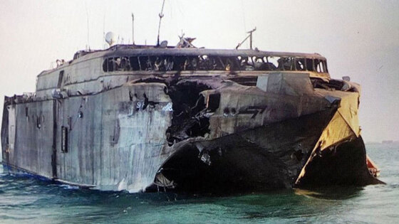 . Катамаран Swift был построен в Австралии в 2003 году. Длина судна – 98 метров. На десять лет катамаран был арендован ВМС США, он был четвертым подобным судном в американском флоте. Затем корабль был передан Объединенным Арабским Эмиратам, которые использовали его для поддержки участвующей в войне в Йемене коалиции. Ракета С-802 китайского производства – это точная копия французской ракеты «Экзосет». Впервые эта ракета была представлена в 1974 году.