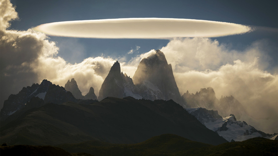 Загадочная фигура над пиками гор Эль-Чальтен в Аргентине вовсе не является доказательством визита инопланетной цивилизации. Погодное явление на фотографии, именуемое метеорологами как лентикулярное облако, нередко можно наблюдать над высокогорными регионами, где сильные ветра рикошетят о каменные вершины. Фотографу Франсиско Хавьеру Негрони Родригесу удалось заснять нависшее линзоподобное облако во всем своем загадочном величии.