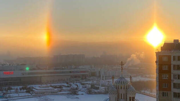 Редкое погодное явление наблюдали жители Москвы - в небе над городом появились "два солнца". Фото публикует Telegram-канал "Новости Москвы". В небе над столицей утром 6 января словно появились два светила. Очевидцы также успели запечатлеть несколько солнечных столбов, исходящих из-под земли. Эксперты называют это явление, когда на небольшом удалении друг от друга наблюдается еще одно "солнце", паргелием, разновидностью "эффекта гало". Аналогичное явление возникает и около луны - его именуют парселеной. Появление "ложных солнц" связано с преломлением солнечного света в верхних слоях атмосферы, где конденсируются мелкие ледяные кристаллы. Ранее ведущий специалист центра погоды "Фобос" Евгений Тишковец рассказал, что в столице удалось зафиксировать редкие явления "ледяные иглы" и "алмазную пыль". В прошлом году сообщалось, что марсоход Perseverance впервые сфотографировал солнечное гало на Марсе.