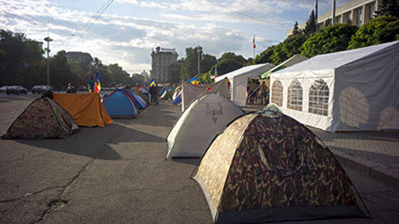 Палаточный городок, который митингующие разбили в центре Кишинева, к утру 7 сентября увеличился до ста палаток и занял четверть центральной площади молдавской столицы. Об этом сообщает «Интерфакс». Накануне вечером, 6 сентября, протестующие установили в центре города около 30 палаток. На протяжении ночи жители Кишинева приносили участникам акции еду, воду, теплую одежду, а также, новые палатки. Сообщается, что поддерживать порядок в городке оппозиционерам помогают бывшие участники боевых действий. 6 сентября в молдавской столице прошел многотысячный антиправительственный митинг, участниками которого стали, по разным данным, от 20 до 100 тысяч человек. Акцию протеста организовало политическое движение «Достоинство и справедливость». Собравшиеся выдвинули властям претензии в коррумпированности и многочисленных злоупотреблениях властью, потребовав отставки президента страны Николае Тимофти и проведения досрочных парламентских выборов не позднее марта 2016 года. По завершении митинга, часть протестующих осталась на площади, установив палатки и объявив о начале длительной подготовки к «противостоянию с властями». Прошедший митинг стал четвертым по счету, организованным движением «Достоинство и справедливость» с весны 2015 года.