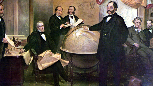 В то же время активная деятельность Муравьева-Амурского и графа Игнатьева существенно расшили российские владения на Дальнем Востоке. Эти земли тоже нуждались в освоении и защите от посягательств со стороны других держав. И если Николай I, расценивая Аляску как «чемодан без ручки», продолжал терпеть убыточную РАК, поскольку «где раз поднят русский флаг, там он спускаться не должен», то пришедший ему на смену Александр II и его брат Константин Николаевич придерживались совсем других взглядов. После Крымской войны страна была истощена финансово, и убыточная РАК болталась на шее у государства дополнительным грузом. Осваивать земли Нового Света было откровенно не на что, и вопрос состоял исключительно в том, как именно потерять Аляску – добровольно и за полновесный доллар или принудительно, в результате военных действий. Основным сторонником идеи уступки Аляски был Великий Князь Константин Николаевич. Его поддерживал министр финансов Михаил Рейтерн. После некоторых колебаний к ним присоединился и министр иностранных дел Александр Горчков.16 декабря 1866-го года прошло совещание, на котором присутствовали император, означенные лица, а также посол в США Эдуард Стекль и военно-морской министр Николай Краббе. Показательно, что представителей РАК на эту встречу даже не позвали – её самодеятельность откровенно раздражала Петербург. Итоги совещания были предрешены, параллельно договорились и по цифре – минимальная сумма, за которую Империя была готова уступить свои заморские владения, составила 5 миллионов рублей. Снабдив Стекля этими нехитрыми инструкциями, его откомандировали назад в Вашингтон. В столицу Соединенных Штатов российский посланник прибыл в начале марте, умудрившись серьезно заболеть в дороге. Большую часть месяца он провел в постели, но, даже не выходя из дома, успешно вел переговоры с американскими коллегами и, в первую очередь, с госсекретарем Стьюардом. Уильям Стюард был принципиальным сторонником идеи распространения территории Соединенных Штатов на обе Америки, кроме того, благодаря Стеклю, он был прекрасно осведомлен о природных богатствах Аляски. В общем, предложение Петербурга более чем заинтересовало, и за несколько раундов царский посланник смог поднять цену до 7 миллионов. Также Стекль хотел возложить на США долги РАК, но этого ему не удалось – сошлись на дополнительных 200 тысячах. Таким образом, у русского посланника получилось увеличить минимальную сумму почти в полтора раза. Оставалась убедить в необходимости покупки американский Конгресс, но рассказывать американскому парламенту о выгодах покупки никто не хотел – сумма в 7 миллионов 200 тысяч для разоренных войной США была более чем чувствительной. Между тем, из Петербурга пришел окончательный текст договора (кстати, Госдепартамент любезно оплатил сумму в 10 тысяч долларов за использование российским консульством телеграфа в период согласования документа). Около полуночи Стекль прибежал вместе с документом домой к Стьюарду, который коротал пятничный вечер, играя в вист в семейном круге. Госсекретарь, который стремился ратифицировать соглашение в Конгрессе до начала весенних каникул, предложил не дожидаться утра, а собраться у него в офисе уже через пару часов.