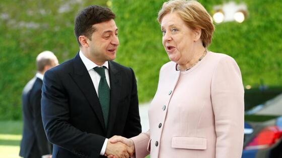 Сегодня президент Украины прибыл с Германию с официальным визитом. Зеленский встретился с канцлером ФРГ. Перед началом переговоров он и Меркель выслушали гимны обеих стран, позируя перед камерами журналистов.
