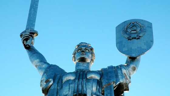 Активисты организации KyivPride запустили дрон с радужным флагом. Коптер повис над памятником «Родины-матери».