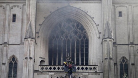 Сообщение о пожаре в Соборе Святых Петра и Павла поступило в 07:30 утра по местному времени. Он считается крупнейшей готической церковью исторической Бретани. Он всего на шесть метров ниже, чем Собор Парижской Богоматери. Церковь была заложена в 1434 и строилась до 1891 года.